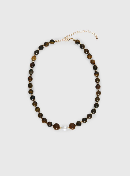 In Your Life Beaded Necklace Brown / Pearl