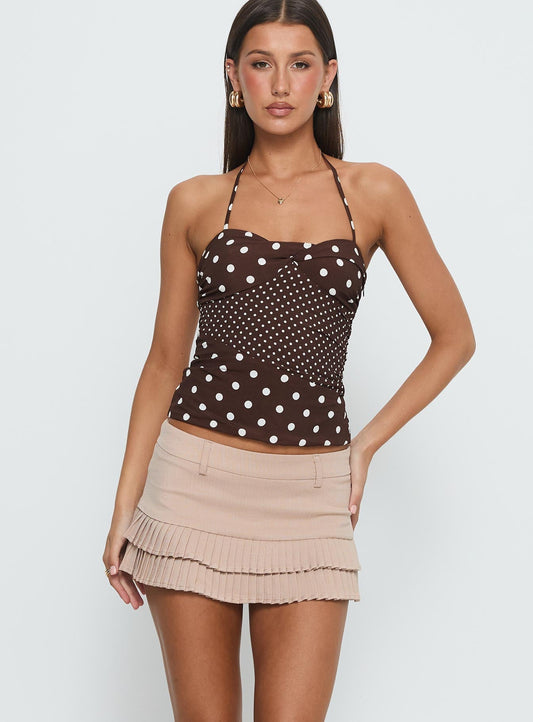 Lorina Tailored Longline Shorts Brown Pinstripe