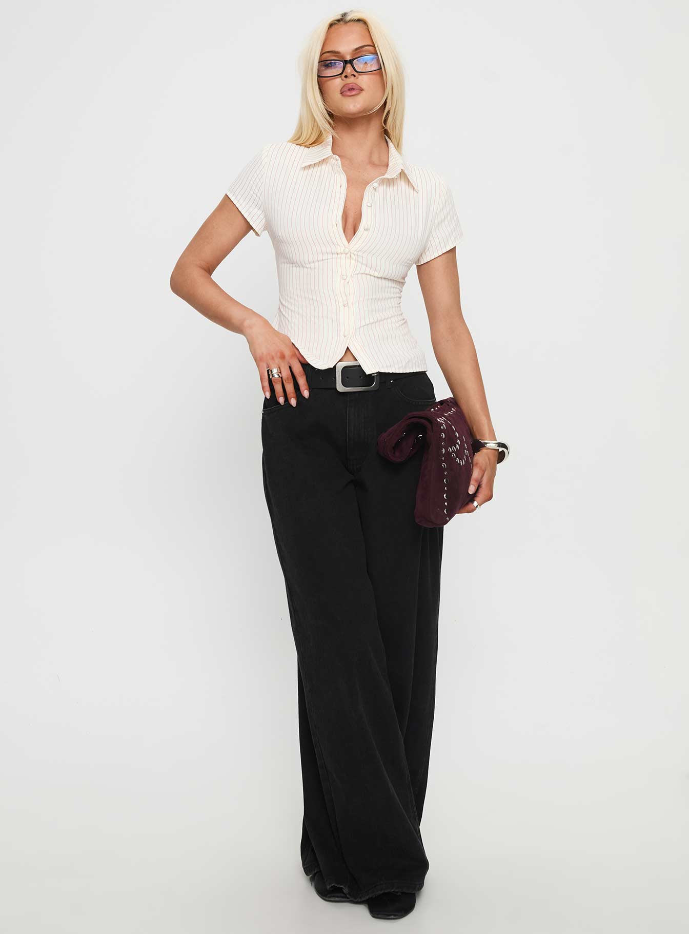 - Button up short sleeve top